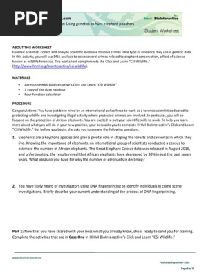 Csi worksheet created by anna grace davis answer key. The Howard Hughes Medical Institute has paired high-quality multimedia resources with comprehensive teacher guides written by actual classroom teachers. Click for full Alternative text. Csi wildlife tracking poachers worksheet answer key African savannah elephants live primarily in protected areas Congratulations. This new installment is bigger and better. On this day people play practical jokes and hoaxes on each other.